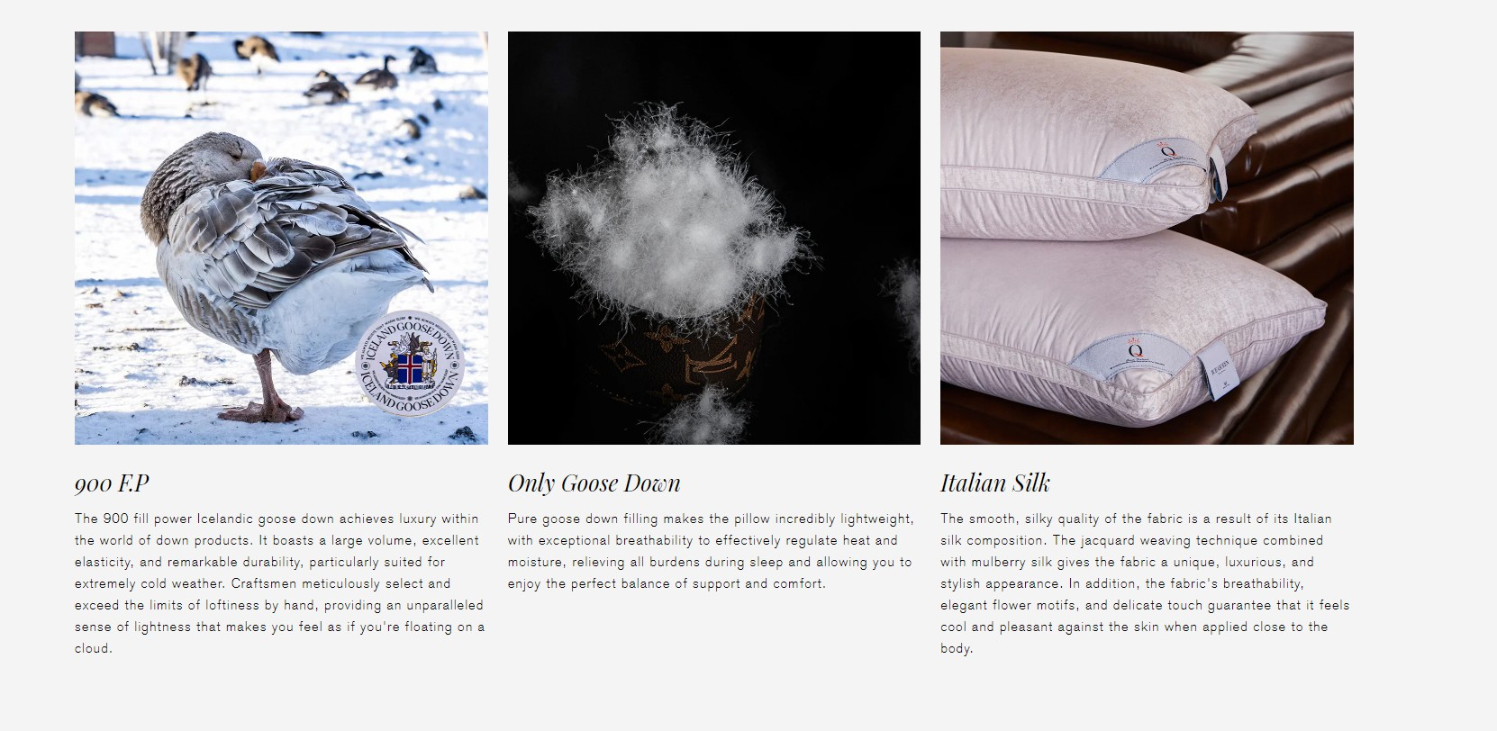 900 F.P Silk Pure Iceland Goose Down Pillow